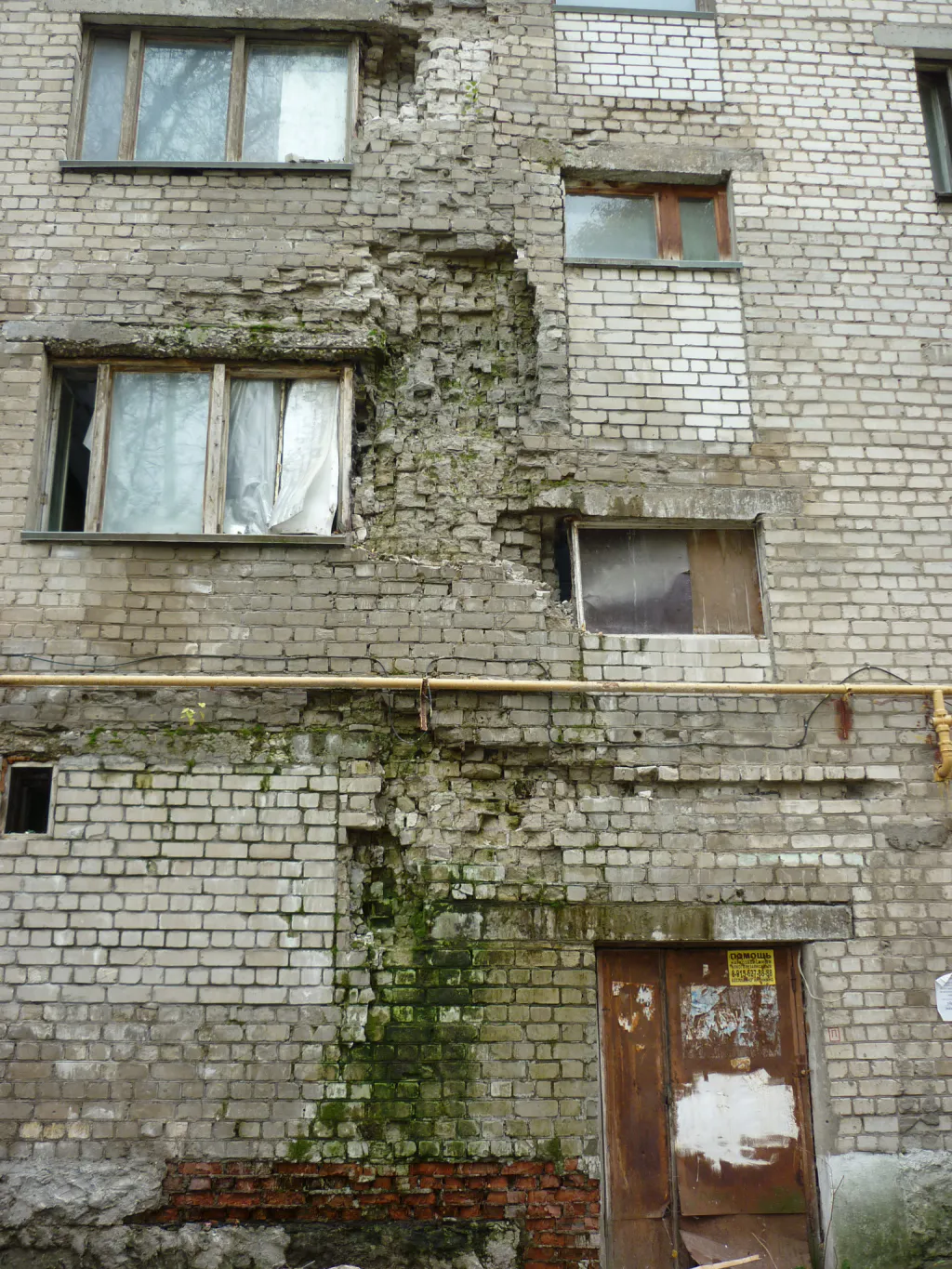 Внешний вид здания дейсвительно внушает ужас. Разрушается фасад здания, от сырости стены покрылись мхом. Внутри еще хуже. В коридоре про нормальное освещение можно забыть, в туалете и душевой его нет и вовсе. Как люди выживают в таких условиях - загадка. Теперь еще, по словам жительницы дома, у них нет даже воды.