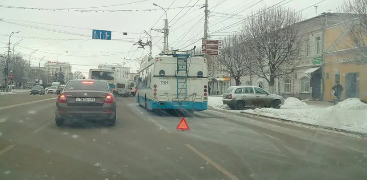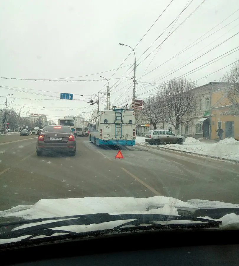 В группе ВКонтакте «Подслушано у Водителей Рязани #ПУВР» опубликована фотография, на которой запечатлен один из новых троллейбусов, который уже успел сломаться.