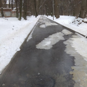 На фотографиях видно, что всю дорожку залило горячей водой.