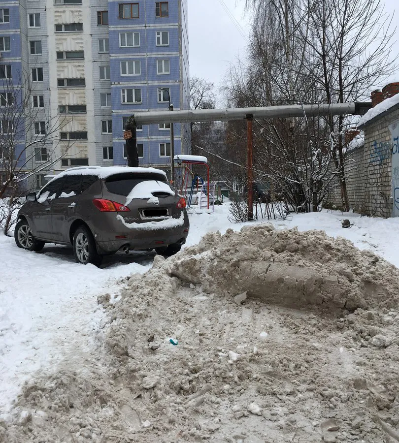 Чудесная очистка снега во дворе Есенина, д.110. Машину просто заперли кучей снега. Кстати, за уборку снега во дворе мы платим. Стоит ли платить за такую "уборку"? - возмутилась рязанка.