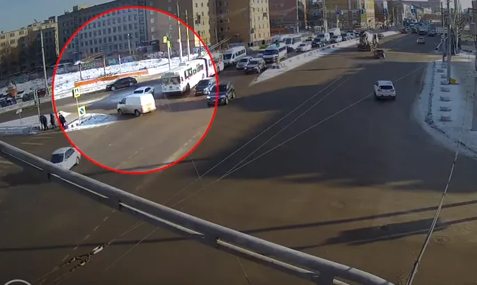 В среду, 7 февраля, в центре Рязани столкнулись микроавтобус "Фольксваген" и легковой автомобиль "Шкода". В группе "Дороги Рязани" опубликовано видео момента ДТП.