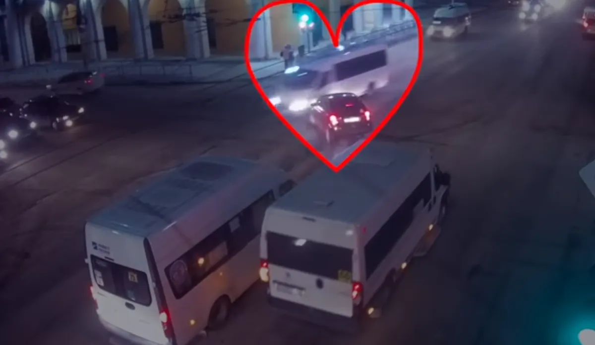 На записи видно, что водитель легкового автомобиля поворачивал налево на улицу Свободы, и не уступил дорогу маршрутке.