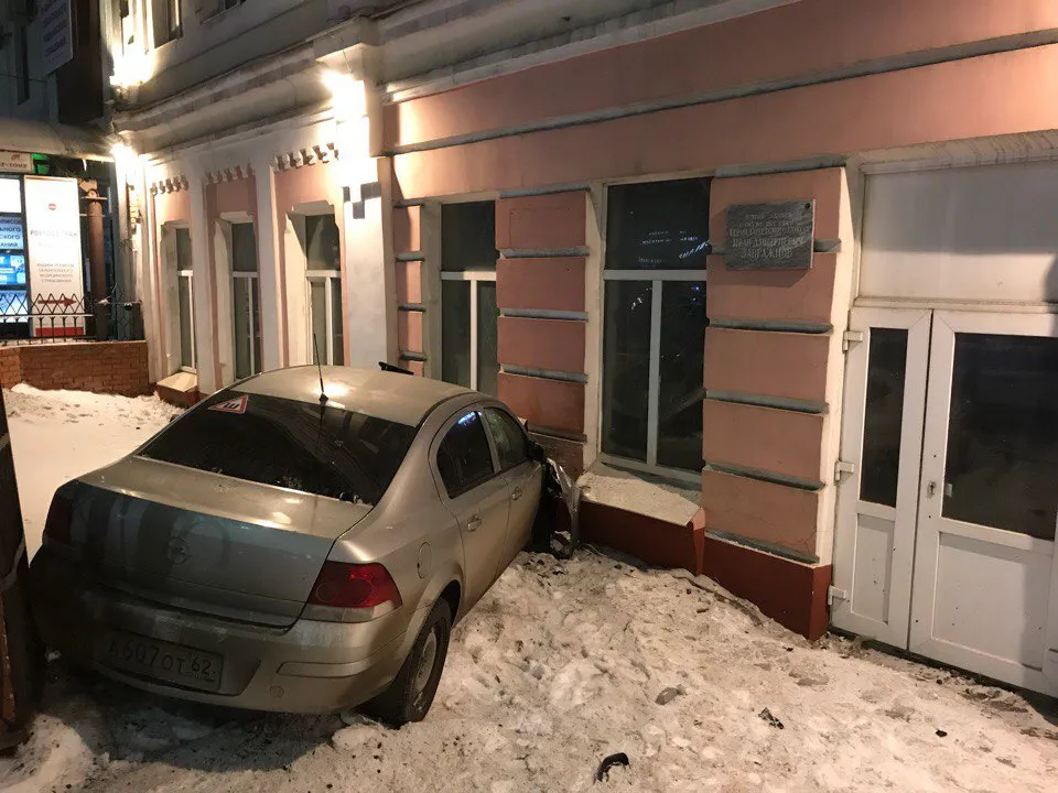 ДТП в центре Рязани: "Опель" вылетел на тротуар и врезался в здание вуза