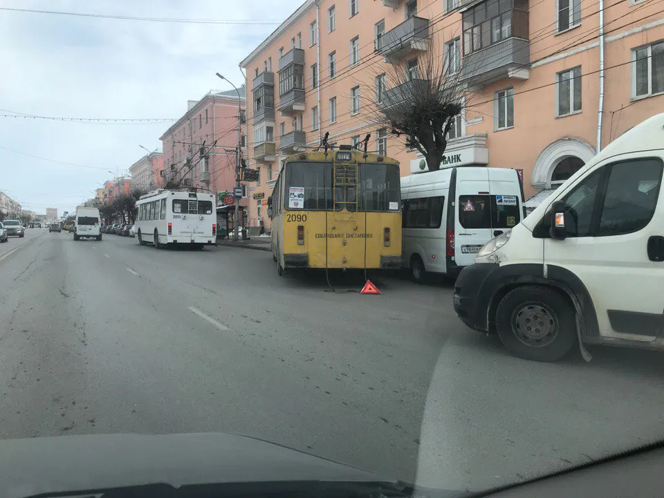 Как видно по фото, троллейбус перестраивался в правый ряд около остановки и подрезал отъезжающую маршрутку.