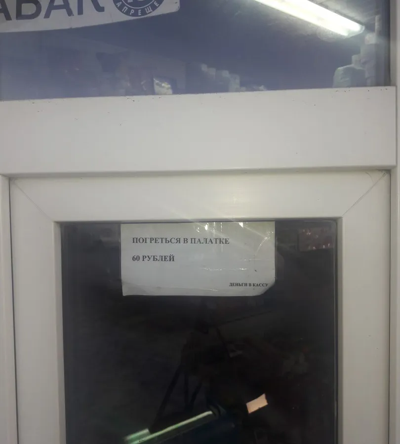 Торговая палатка на Сасовском вокзале запустило очень необычную, но, наверное, комерчески выгодную акцию. Они предложили посетителям погреться внутри за 60 рублей. Фотография была опубликована в группе ВКонтакте Сасово online.