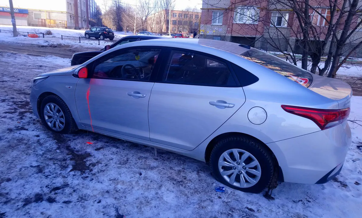 В Рязани прокололи колеса шести машин и облили их краской