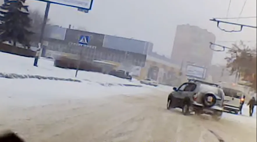 Как НЕ нужно входить в поворот - Шевроле Ниву занесло в центре Рязани. Видео
