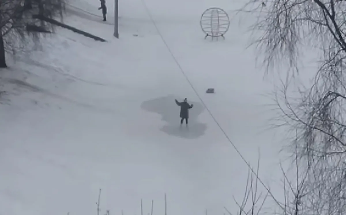 Когда есть желание, но нет возможности: девочка катается на коньках на "пятачке" льда около школы. Видео