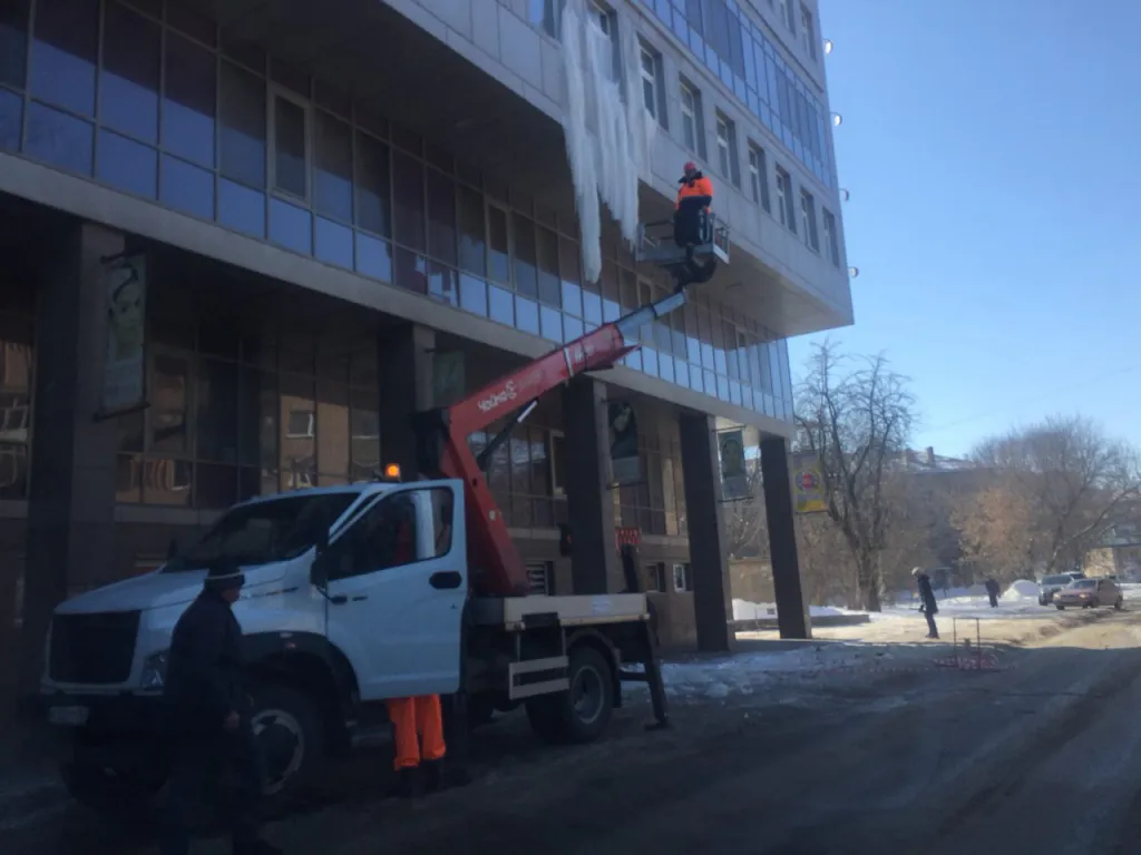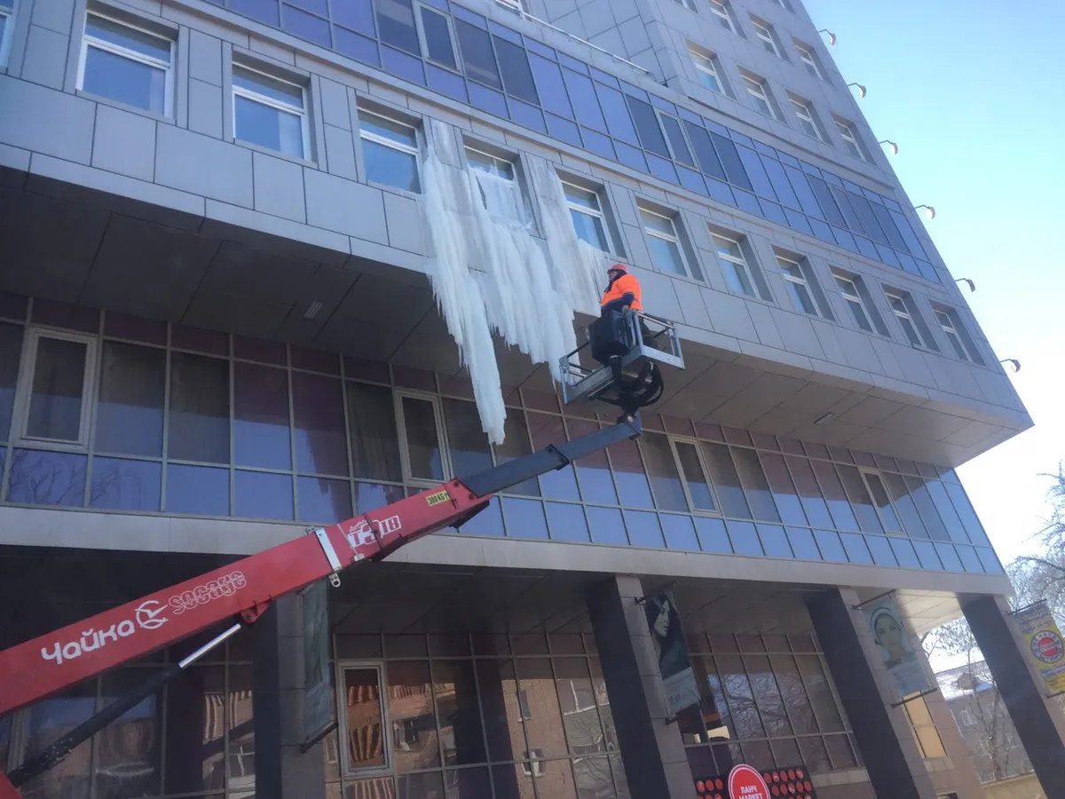 Угрожающих размеров сосулька образовалась на одном из бизнес-центров Рязани