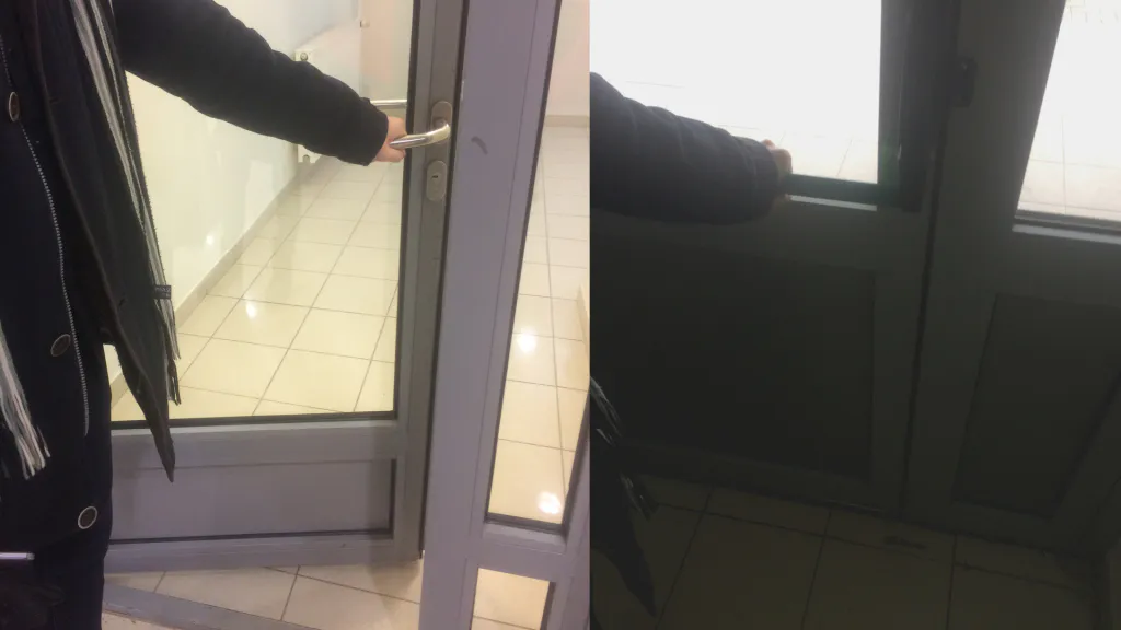 Вообще, пожарные выходы на улицу у нас всегда открыты. Мы соблюдаем все нормы безопасности. Сегодня, правда, дверь была закрыта, но это из-за того, что при выходе люди могли подскользнутся на льду. Территорию убрали, лед посыпали пескосоляной смесью и дверь снова открыта.