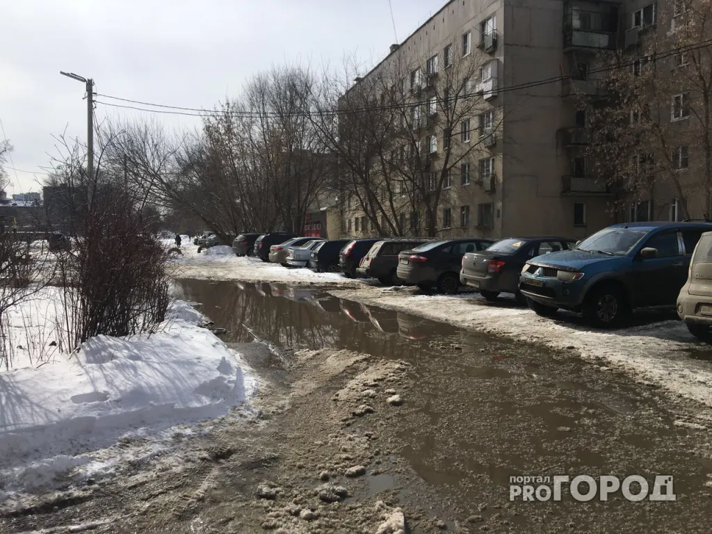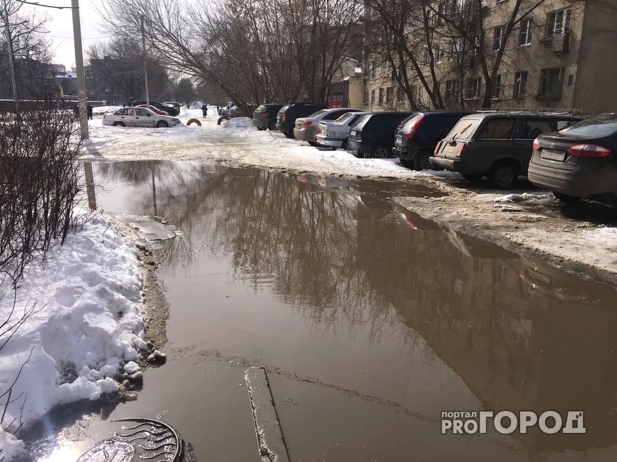 Поток машин во дворах на Ленинского Комсомола разбил покрытие - теперь там потоп
