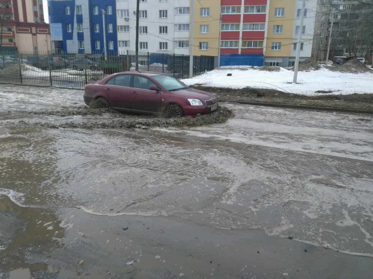 С приходом весны, в самом центре Рязани настоящий потоп. Сточные и талые воды образовали непроходимые водоемы. Судя по всему, нарушена работы ливнеевой канализации. Водители и пешеходы вынуждены пробираться через непроходимые лужи.