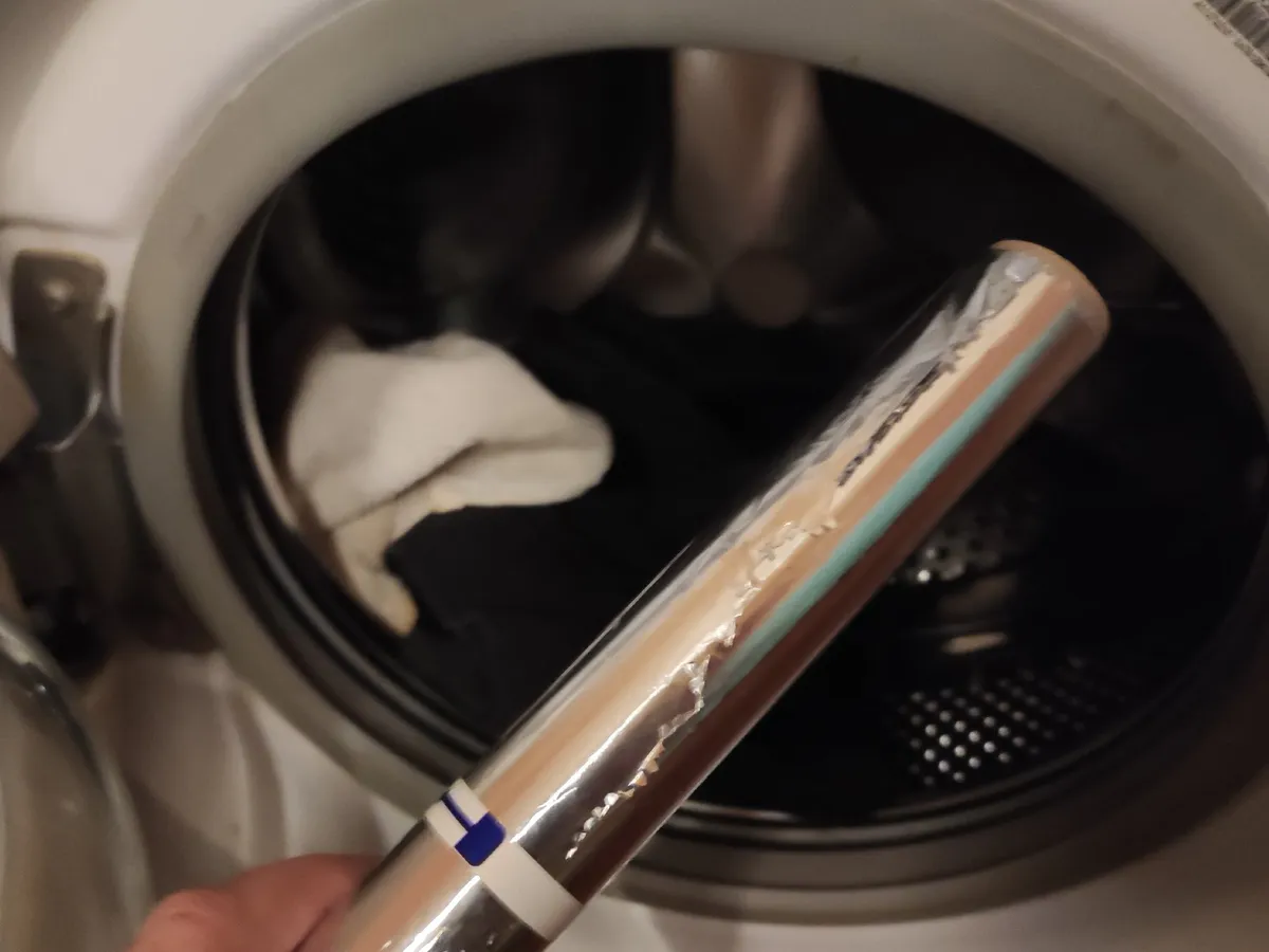Не делайте слишком большие куски фольги — могут забиться в щели барабана. Кидайте шарики только в барабан, а не в лоток для порошка. Следите, чтобы фольга не разворачивалась, делайте плотные гладкие комки. И меняйте их раз в 10–15 стирок, потому что со временем материал изнашивается.