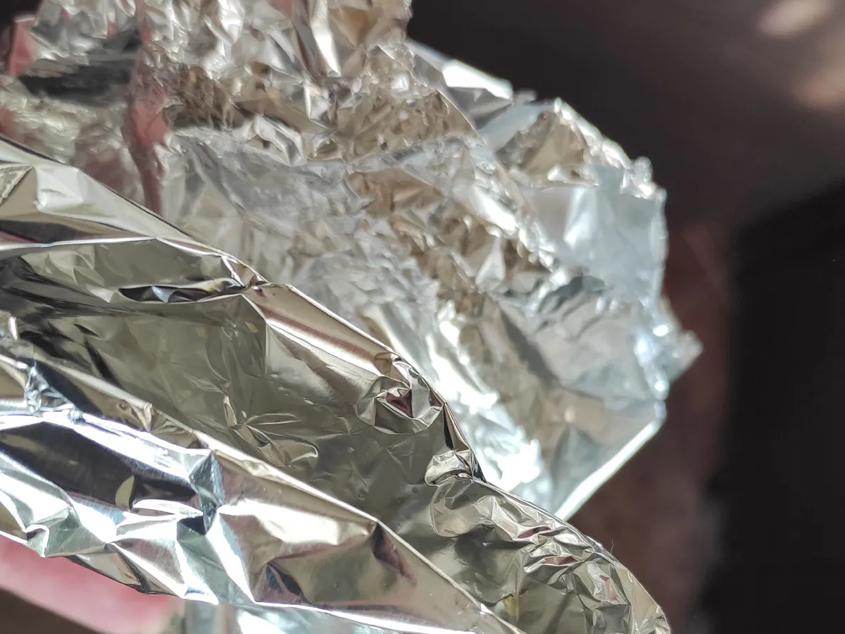 Ничего сложного тут нет. Берете обычную пищевую фольгу (самую дешевую, какая есть в магазине). Отрываете кусок, сминаете в плотный шарик. Размер примерно как мячик для пинг-понга или грецкий орех.