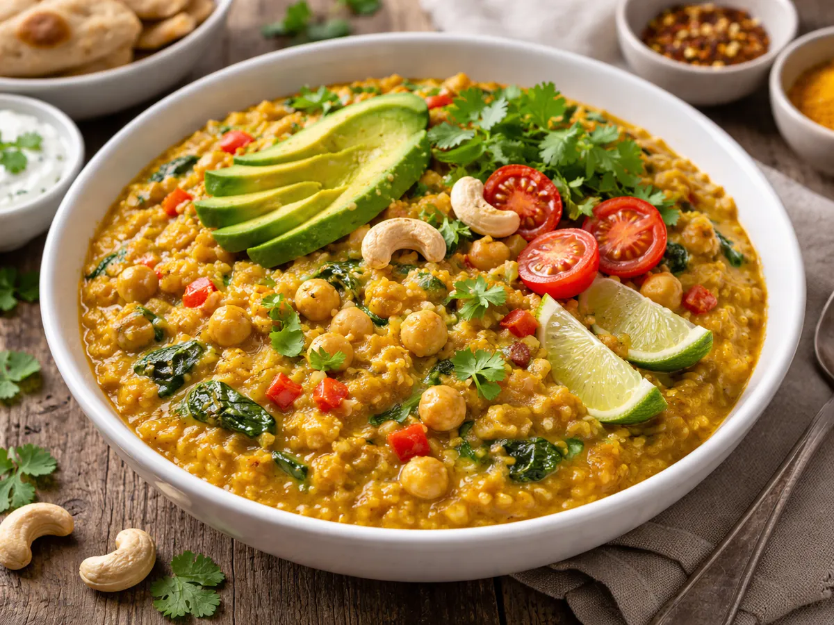 В индийской кухне подобные сочетания давно привычны. Там умеют превращать скромные крупы и бобовые в полноценный обед без мяса — такой, после которого сытость держится несколько часов.
