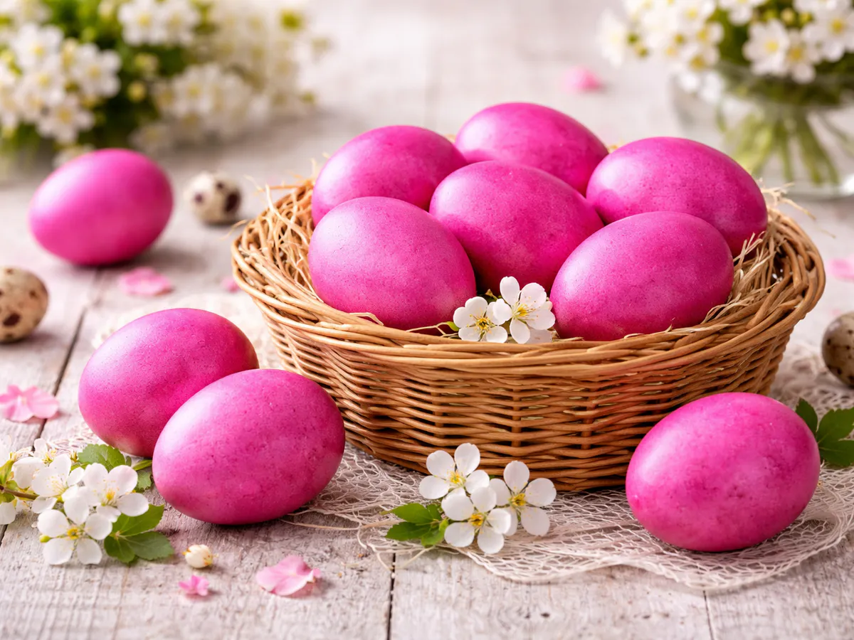 Каждый год одно и то же: шелуха, свекла, каркаде. Цвета знакомые, предсказуемые. Красиво — да, но уже без эффекта «вау». И вдруг выясняется, что есть способ, который выглядит совсем иначе — ярко, глубоко, с переливом. Почти как из витрины, только без всякой химии.