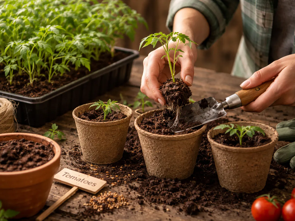 Сеянцы рассаживают аккуратно, заглубляя чуть глубже, чем они росли раньше. Для томатов это даже плюс — начинают наращивать дополнительные корни.